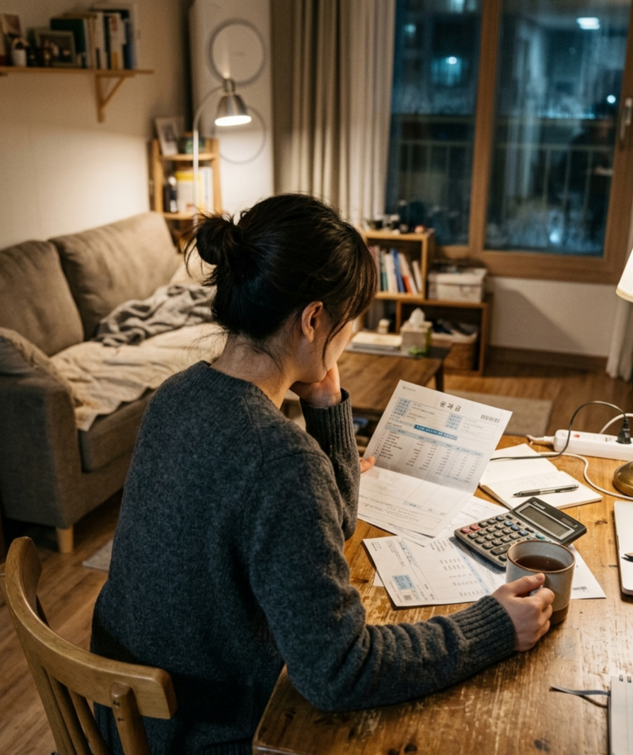 고정비 내역을 조용히 확인하는 생활 장면